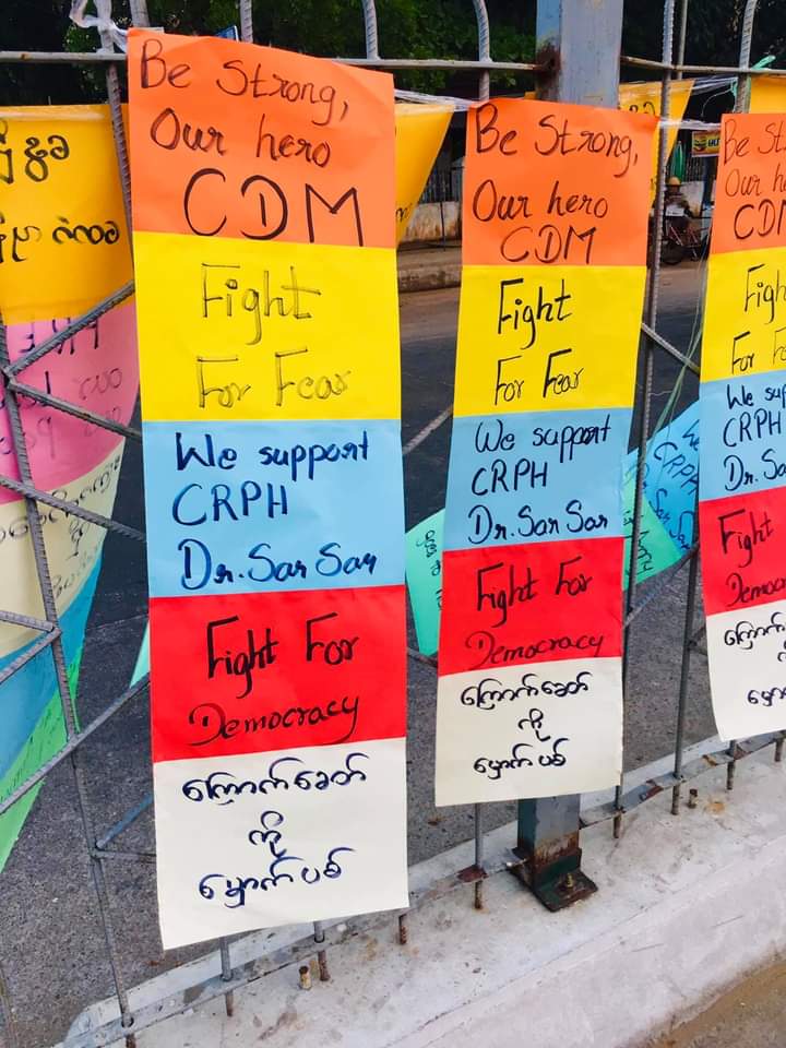 #Myanmar#military security forces cracking down on street demonstrations & using significant force against protesters, citizens using various methods now to voice their opposition to#militarycoup including putting up messages before dawn in#Yangon#WhatsHappeninglnMyanmarpic.twitter.com/Ygb4SJiELO