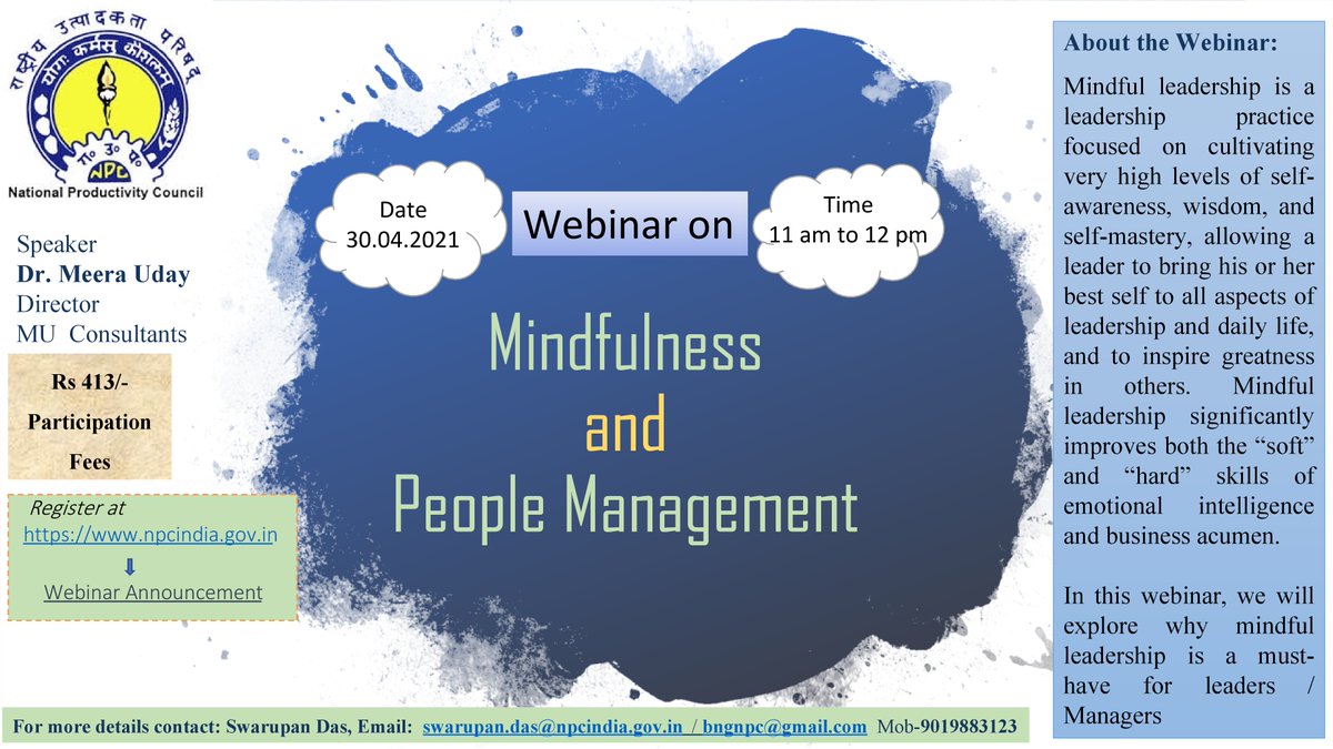 #npcindia#webinar on#mindfulness and#people#management on 30.04.2021 at 11 am.#npc#KYP#ePass#Leadership#managers#effective#Mindset#mindsetmatters#mindsetiseverything#managementpic.twitter.com/Px7VhTpsVI