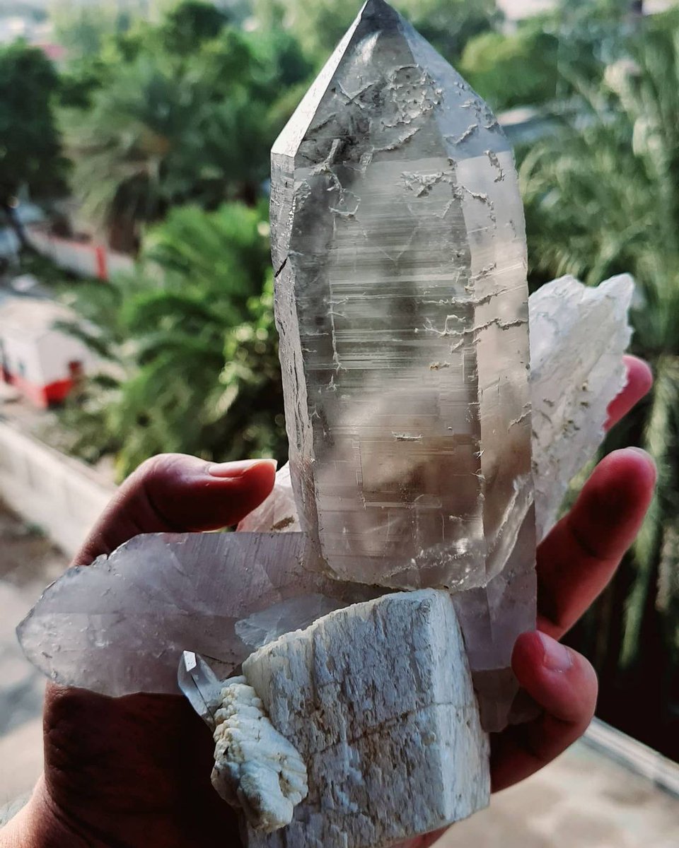 Elestial Smoky Quartz mineral Specimen with combination of feldspar from shigar Valley Northern area of Pakistan Photo: Shaheen Miners (Fayyaz Ahmed)
