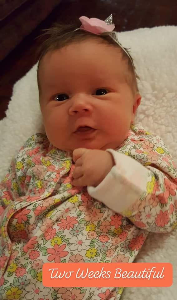 Little Miss Virginia is two weeks old today. Our little Ginger-snap can't wait to visit.