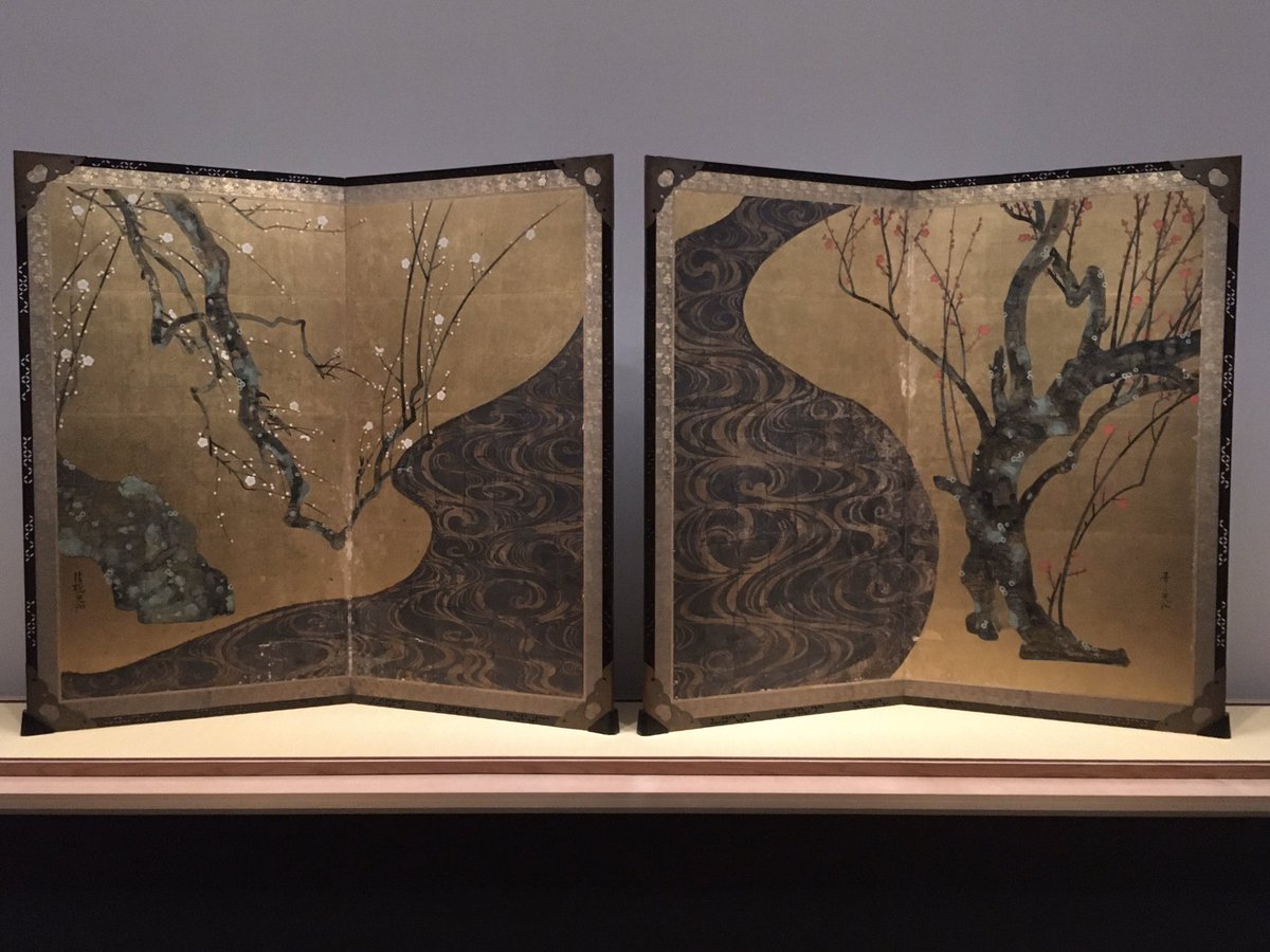 #MOA美術館 名品展。初めての「紅白梅図屏風」。流水、紅白梅樹も力強く動きがあり、迫ってくる感じがすごかったです。3国宝はもちろんですが、そのほかも各ジャンルの名品揃いで時間配分に困りました(^^;;#Bura_Bi_Now#国宝#紅白梅図屏風pic.twitter.com/zLVaNvNODf