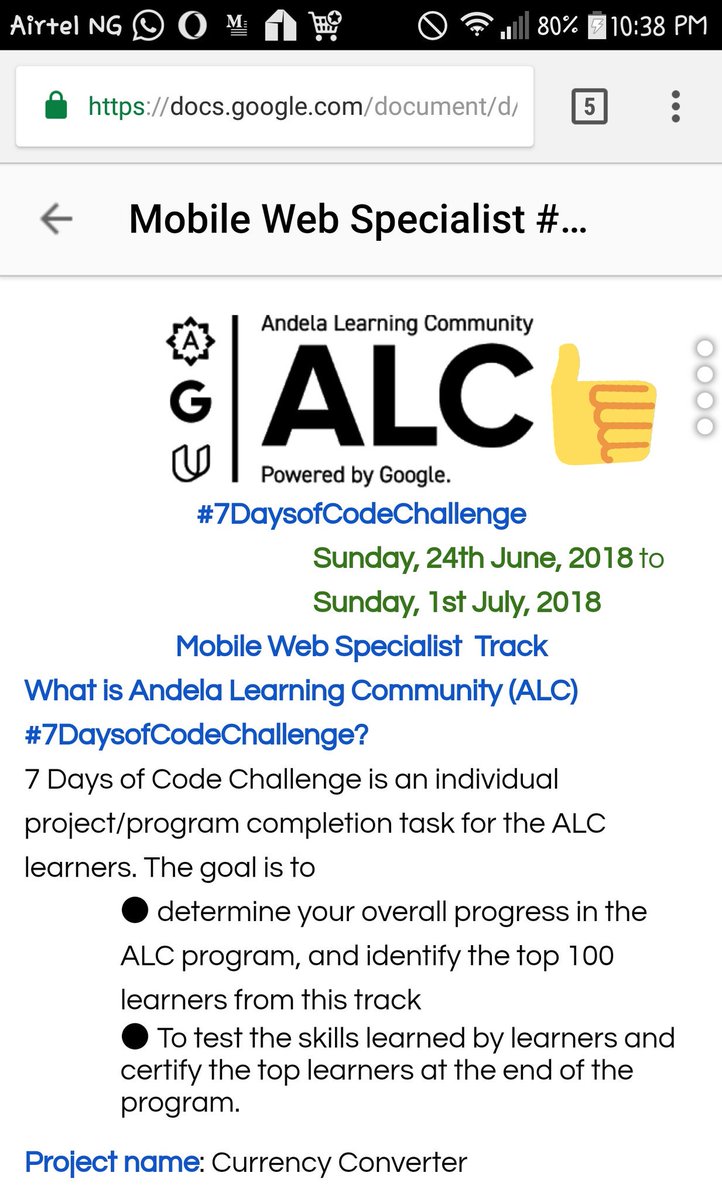 #7DaysofCodeChallenge begins today... Wishing all fellow#ALCwithGoogle#MobileWebSpecialist track participants the best of luck. pic.twitter.com/Hg4Nkn91cG