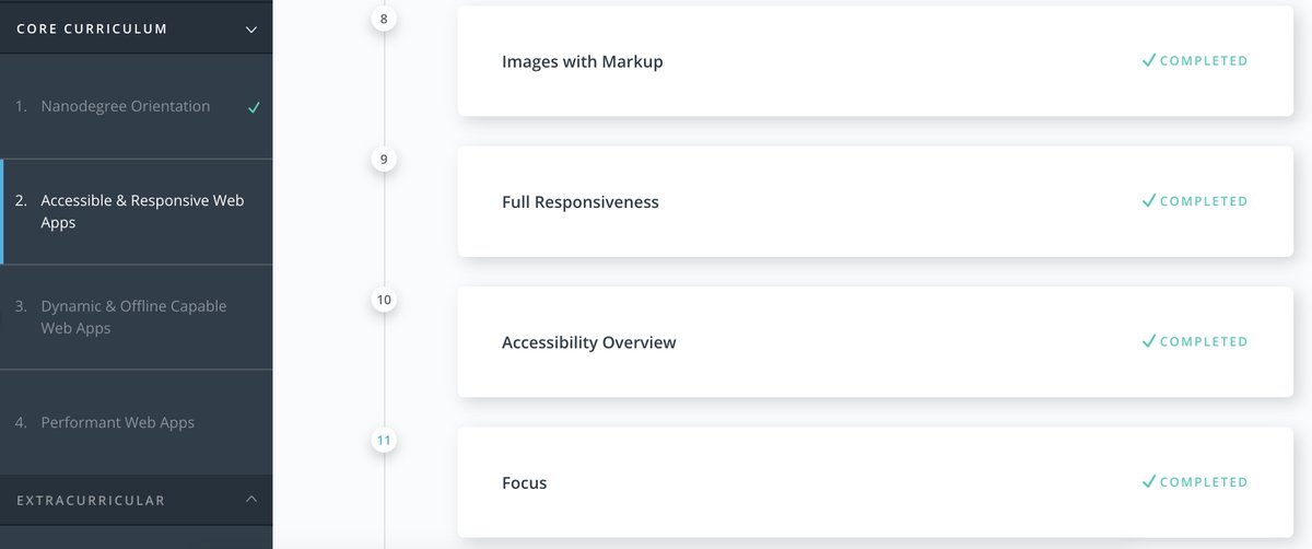 #MobileWebSpecialist@udacity#javascript => Images with Markup: 15 of 15 lectures => Full Responsiveness: 11 of 11 lectures => Accessibility Overview: 14 of 14 lectures => Focus: 18 of 18 lectures 3.65 x (#100DaysOfCode#100DaysOfDesign ) ===#365DaysOfWebpic.twitter.com/pAVwx8cKXo