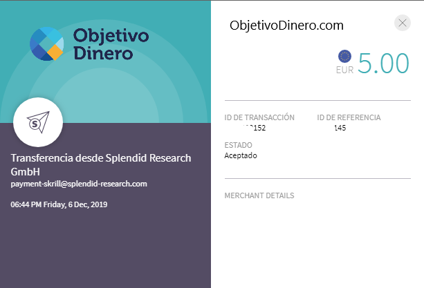 Pago recibido hoy en 10 minutos de