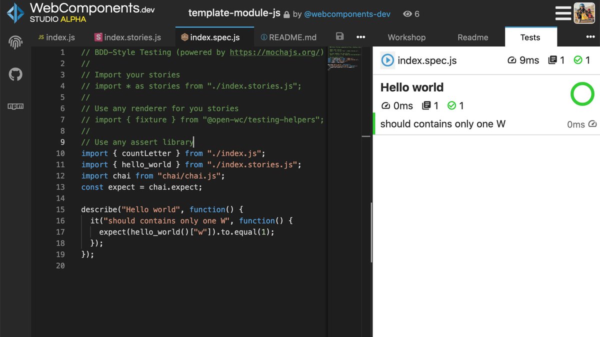 Sample with the great testing helpers from our friends @openwc : https://webcomponents.dev/edit/BQjgOJoeJDAJVMRnygLL …pic.twitter.com/JwbcsaZ1vG