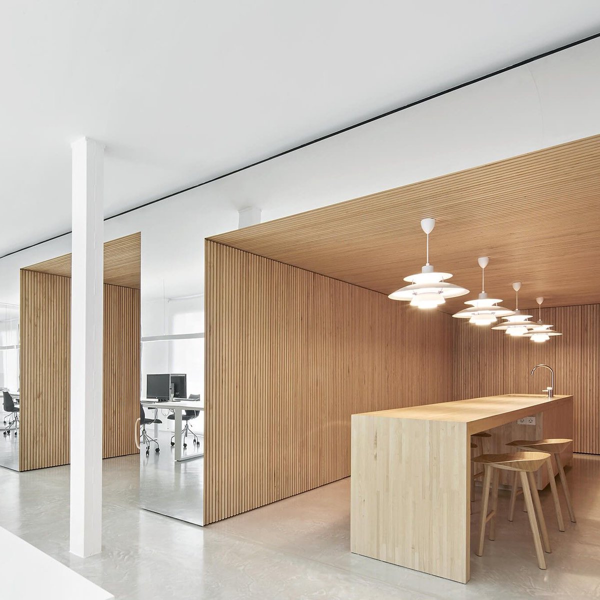 PH5 pendant from Louis Poulsen is one of those fixtures we tend to think of as residential and seem to only see in houses. Think again! It looks fabulous in this commerial office space by OHLAB studio https://buff.ly/2GLpFKe