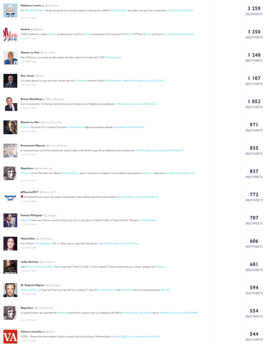 #Macron: La polémique#MohamedSaou a généré + de 42000 tweets depuis hier. Davantage que tweets favorables sur 5 derniers jours d'#EnMarchepic.twitter.com/4gwnjIIyEP
