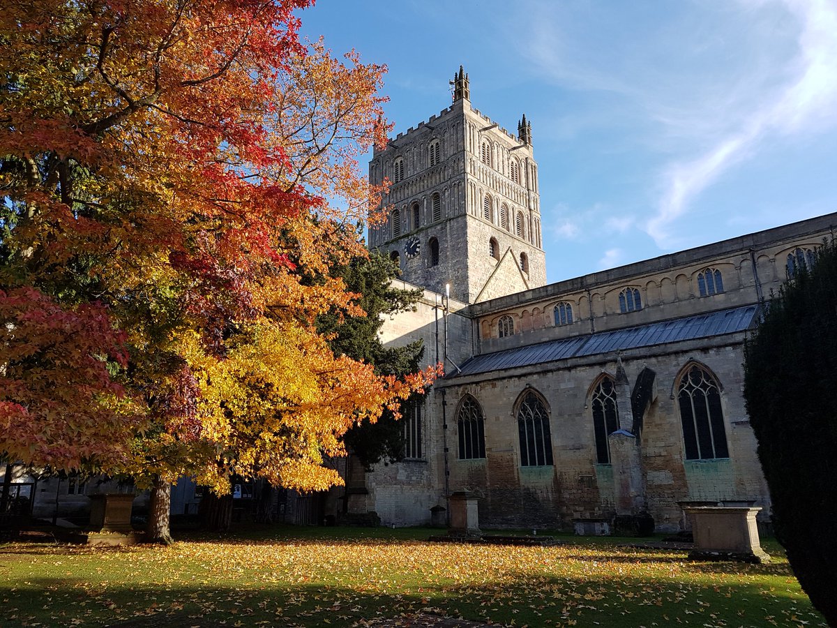 #medieval glory of Tewkesbury Abbey amongst some beautiful#autumn colour. The Benedictine abbey was founded in the 12thC after the#Norman Conquest, and became a parish#church after the dissolution of the#monasteries in 1536#history#Gloucestershirepic.twitter.com/4Rq5MASyLP