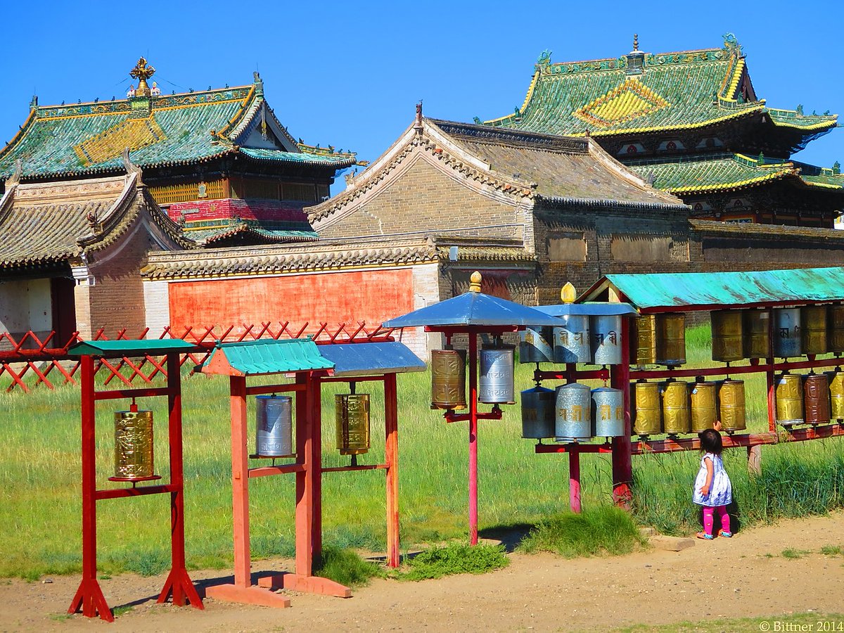 A Mongolian girl spins prayer wheels at the famous Erdene Zuu monastery, the oldest surviving monastery in Mongolia. https://peterswanderings.wixsite.com/anomadicstateofmind …