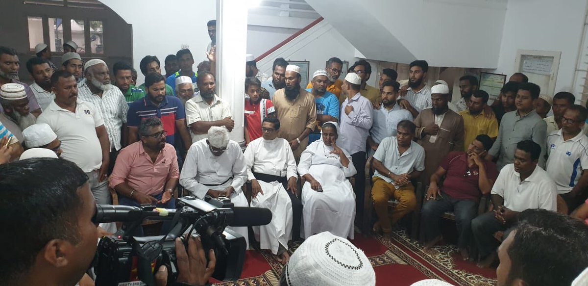 #Negombo for decades. So we are deeply pained that we can’t help or support our#Christian neighbours in their time of grief or even attend their funerals. - Meeting @ Ngmbo#mosque with#Muslim & Christian clergy & CSOspic.twitter.com/1vNAH5OSKq