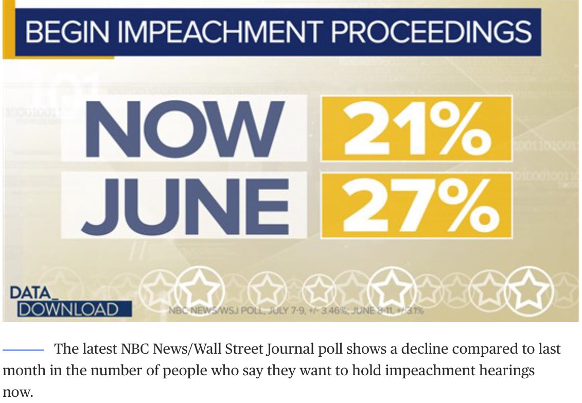 This month, only “21 percent of registered voters say that there is enough evidence for Congress to begin impeachment hearings now.” -