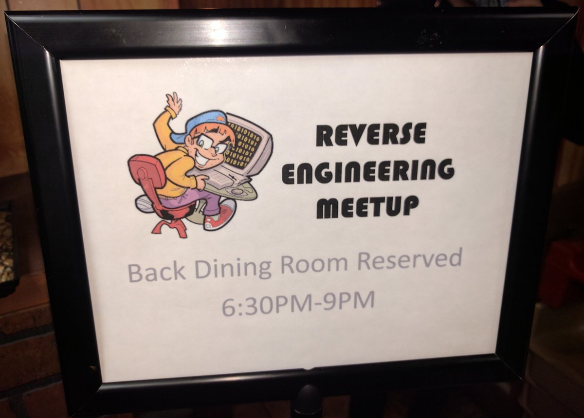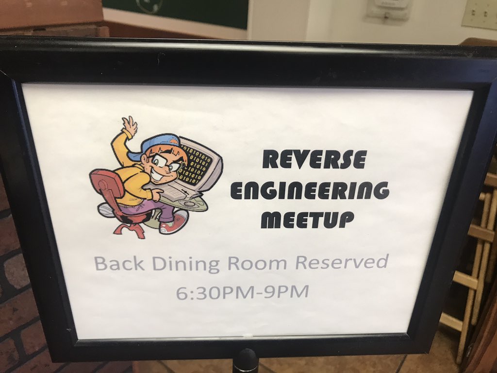 Mountain View Reverse Engineering Meetup scheduled for Wednesday, January 10th, at Giovanni's in Sunnyvale 7:00pm. Schedule TBD, but should have talks: https://www.meetup.com/Mountain-View-Reverse-Engineering-Meetup/events/246325665/ … via