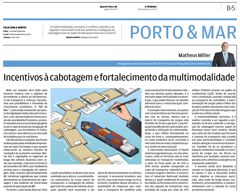 @atribunasantos de ontem escrevi sobre a MP#BRdoMar que promete um incremento na#cabotagem, mas que não elimina a necessidade de um plano nacional acerca da#multimodalidade.#Navegação#Portos https://www.atribuna.com.br/noticias/portoemar/matheus-miller-incentivos-%C3%A0-cabotagem-e-fortalecimento-da-multimodalidade-1.65160 …pic.twitter.com/nMlgxY6j59