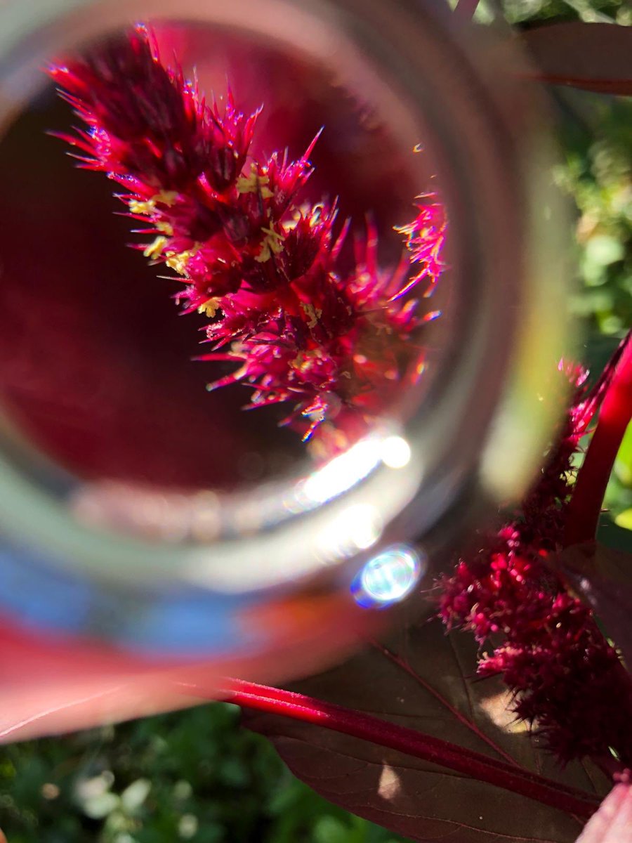 Observing the transition of autumn by catching the bold colors of the last blossoms, turning leaves, and moss drying from a recent rain. Enjoying magnification in a home garden in downtown Telavi, Georgia