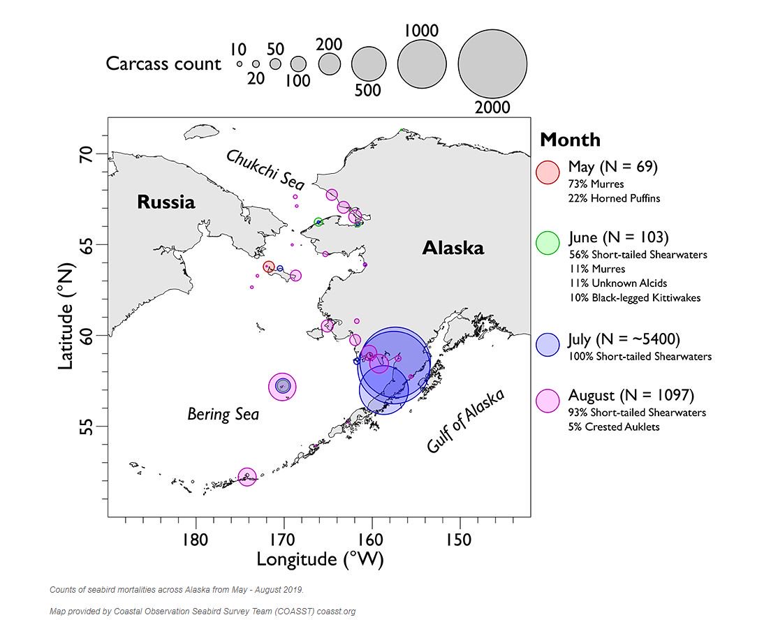 Scientists have confirmed a huge marine heatwave killed nearly a million seabirds during 2014-17. The 'blob' was up to 6 degrees C above typical temperatures. Casualties incl. 62,000
