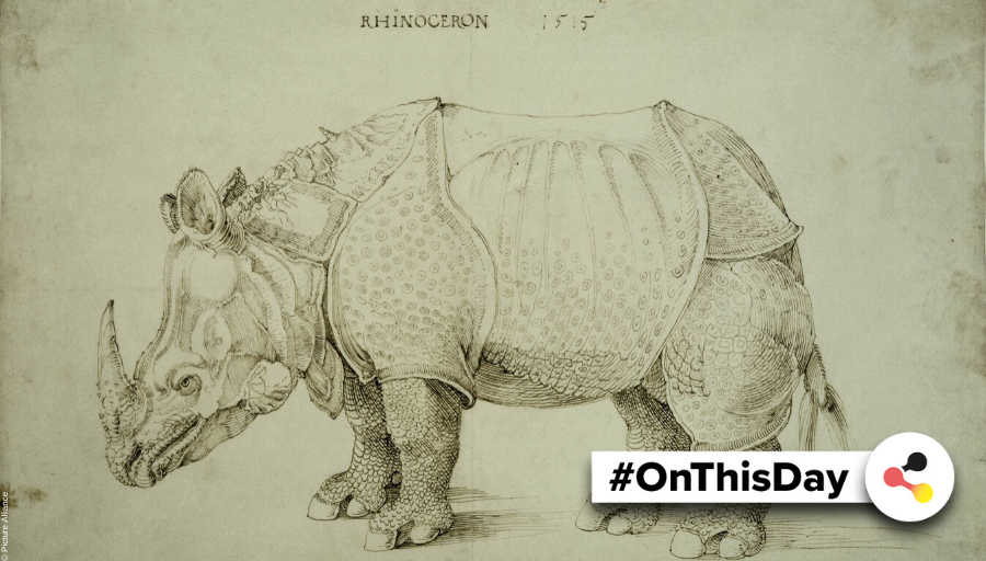 #OnThisDay in#Germany: In 1515, a rhinoceros set foot on#European soil for the first time since the 3rd century in Lisbon. Albrecht#Dürer created a#monument to the animal in the same year with his woodcut#Rhinocerus.#OTD#GermanHistory#Animals#GermanArt#MuseumWeek pic.twitter.com/uor56peR5B