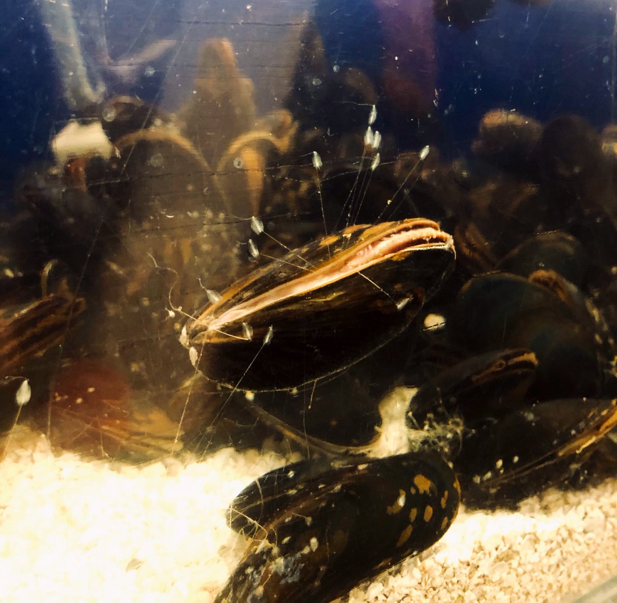 Every year we hold a cleaning event for our mussels tank. Here are some cool pictures of happy mussels laying adhesive plaques