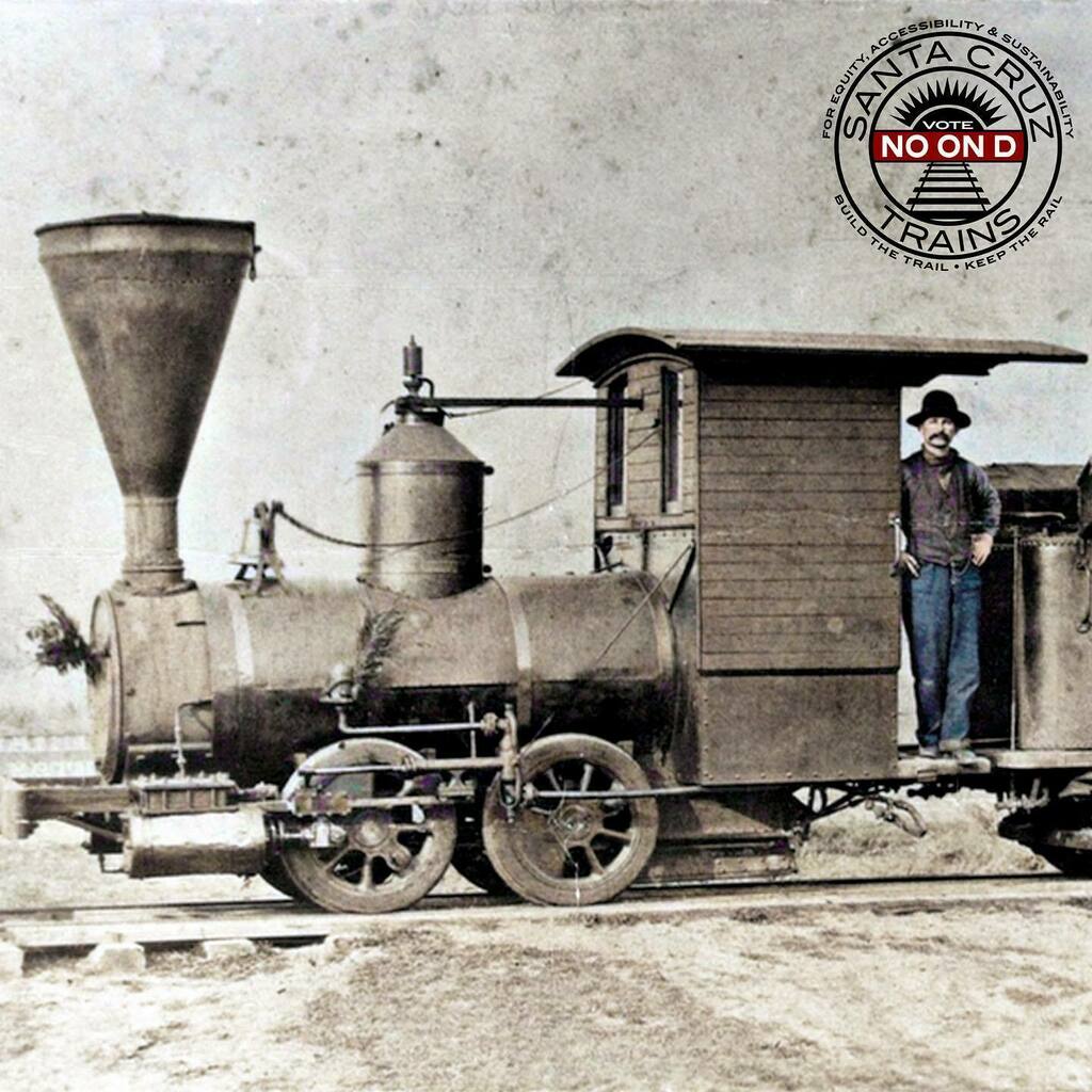The Santa Cruz Railroad’s Betsy Jane locomotive with its engineer at the helm, ca 1875. Courtesy @ucsc_library