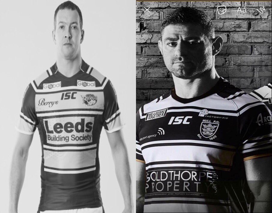Danny McGuire and Mark Minichiello show off the new Hull FC shirt..... wait, what!?