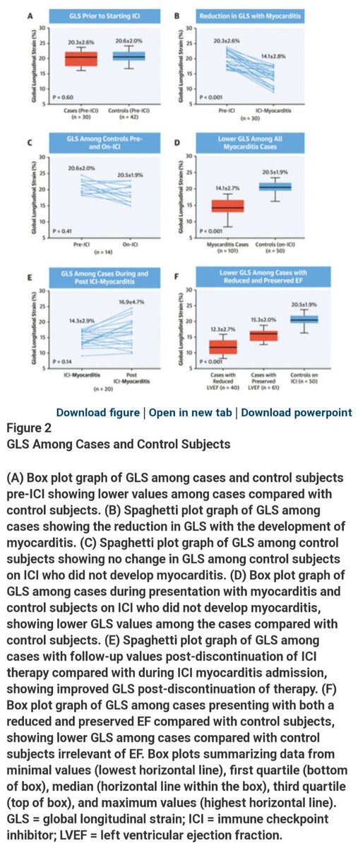 #ICI#myocarditis &, compared w control subjects, was lower among cases presenting w either a preserved or reduced EF. Lower#GLS was strongly associated with MACE in ICI myocarditis presenting with either a preserved or reduced EF.”#ImmuneCheckpointInhibitorshttps://twitter.com/JACCJournals/status/1224784827716644864 …