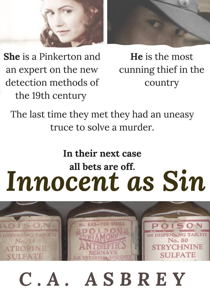 Innocent as Sin out July 26th “What am I gonna say to her, Nat?” Hooves clattered in the background and both men turned. Nat groaned. “How about, Why are you stealing Nat’s horse, Abi?” He leaped to his feet. “Stay here, I’ll get her. That damned woman is impossible.”