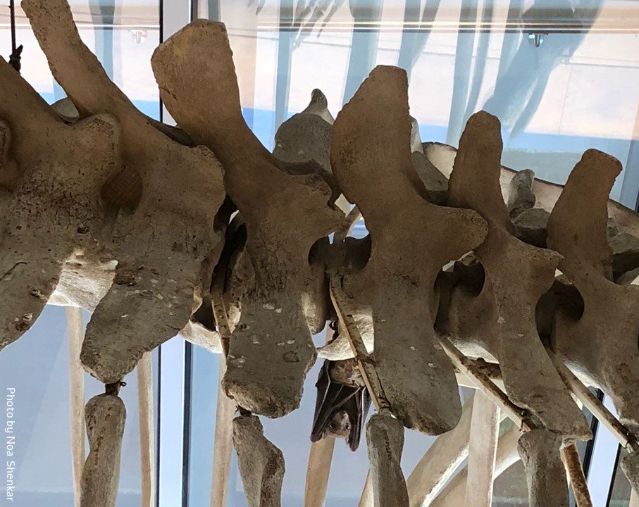 Whaling bat! At the entrance to the new Steinhardt museum of natural history there is a massive Minke whale skeleton - look who found a safe place for a nap