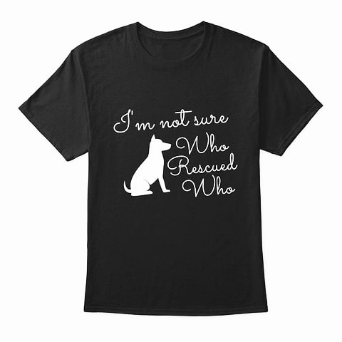 I'm not sure who rescued who... get this cool shirt 20% off code LOVEPETDAY select Rush shipping and get shirt before National Love Your Pet Day 20th feb.... http://bit.ly/dogmemesdesigns . follow