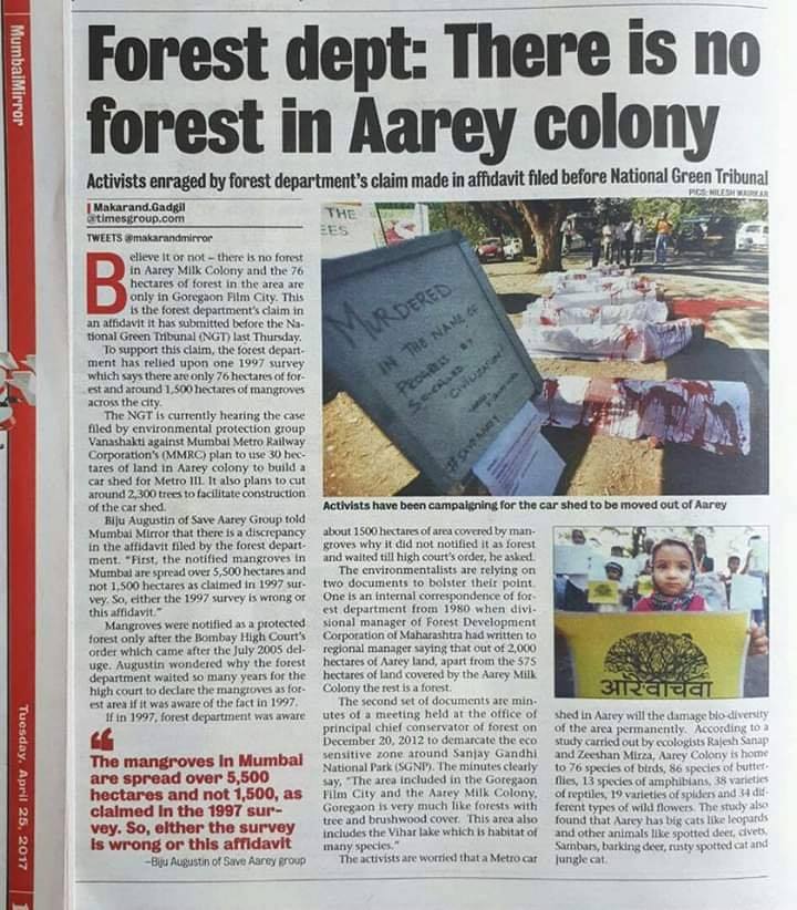 #ForestNotForest? Why is ForestMinistry playing with#Mumbai's & our kids' futures?CM@Dev_Fadnavis -@AdityaThackeray - What happened to SS's#SaveAArey@saveaarey moment? History will remember this govt as the 1 that killed a#NationalPark that#Mumbai was proud of!pic.twitter.com/pB8zhYzWXE