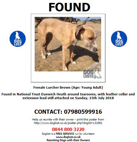 #FOUND#DOG UNKNOWN Female#Lurcher#NationalTrust#DunwichHeath#IP176 Sunday, 15th July 2018#FoundDog@VetsGetScanning@SAMPAuk_ http://www.doglost.co.uk/dog-blog.php?dogId=131881 …pic.twitter.com/BdKOf5Nrhy