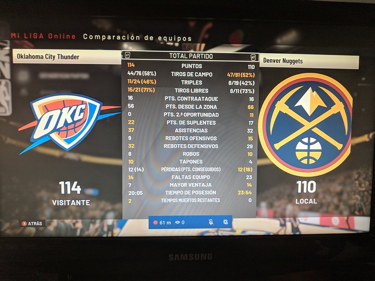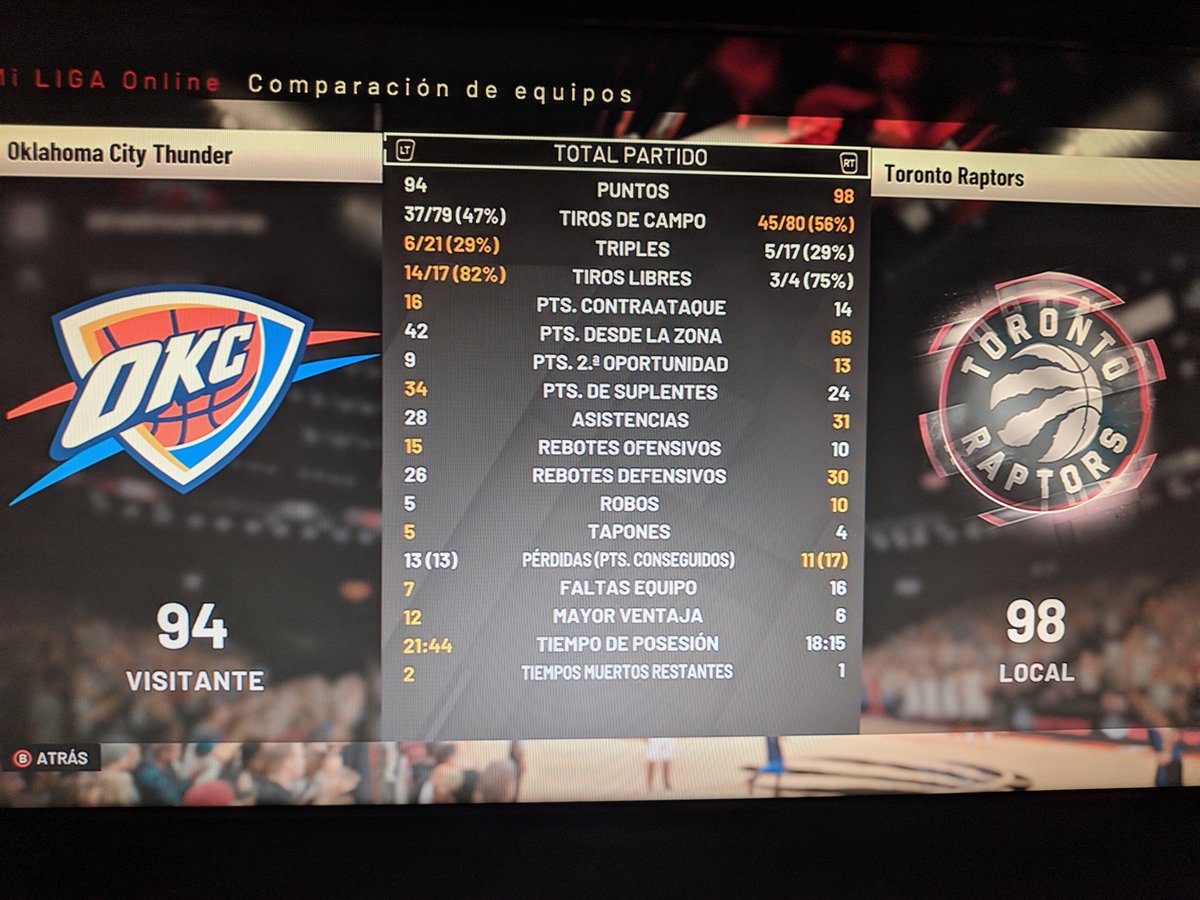 @LigaPhoenix2k En un partido bronco con muchos fallos y problemas de juego, el equipo que se llevó el gato al agua fue OKC liderados por 22 puntos de Durant.@NBA2K@_NBAESP_#nba2k19xboxone pic.twitter.com/6Xh0X548vg