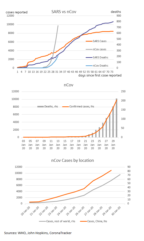 #nCoV19 and the#SARSvirus. At the same time after the initial outbreak, nCov has claimed as many lives as SARS and has infected about 3 times more people. nCov infections are still accelerating. Watch out non-Asia...pic.twitter.com/SIISyqXLf2