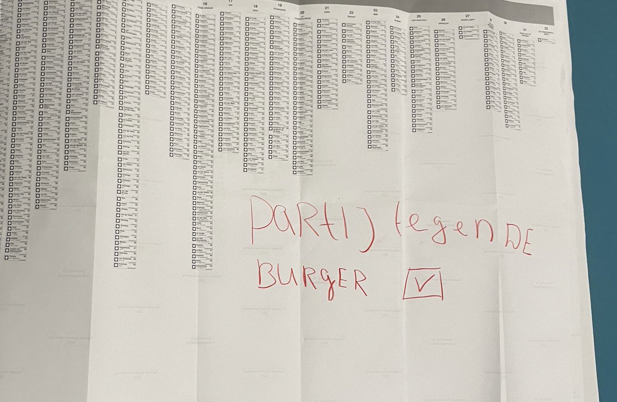 Ik ben kapot, vanaf 7 uur tot 11:30 met een kleine pauze van 1,5 uur zo ongeveer. Leukste stembiljet dat ik tegenkwam was toch wel deze. Wel ongeldig
