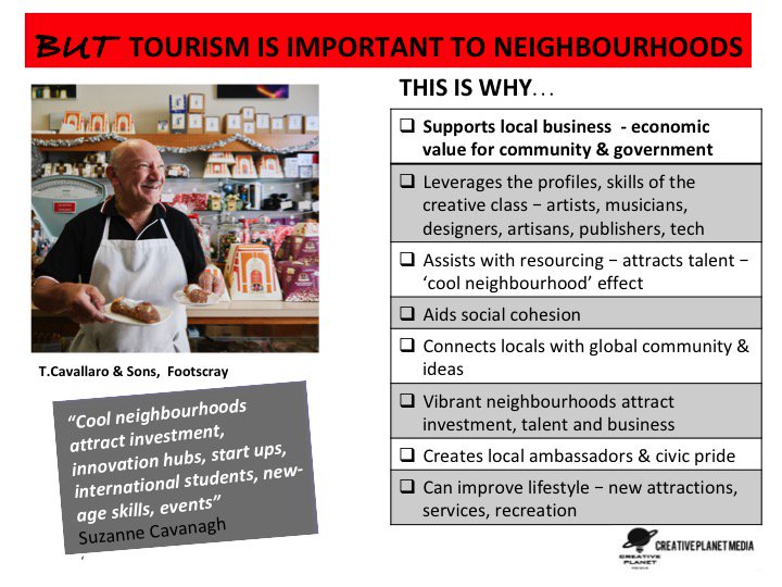 #Neighbourhoods are important for#tourism but we shouldn't forget that tourism is also important to neighbourhoods - helping develop them economically and socially. Clip from a forthcoming August conference#community#society#localgov@askART@VicCouncils#ARTNpic.twitter.com/FpqKgUu5az