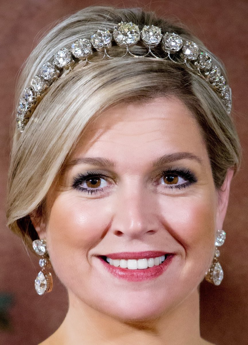 Queen Máxima of the Netherlands wearing rose cut diamond bandeau.
