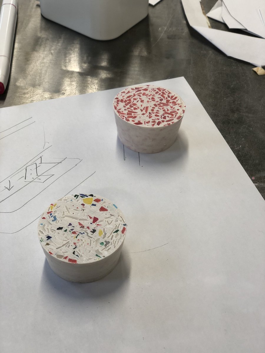 A little move away from clear resin, some students are researching using Jesmonite ac100.
