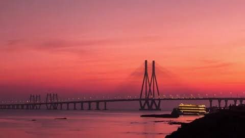 Synthwave sunset spreading over the Sea Link bridge in Bombay. Issa mood!