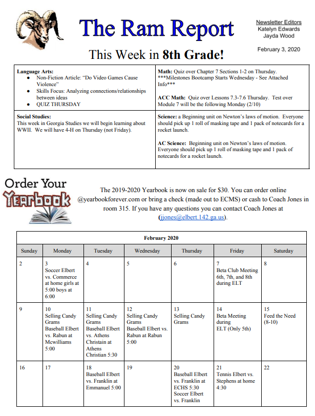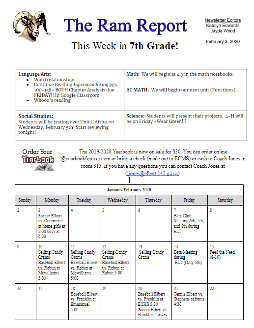 Newsletters for the Week of February 3rd.