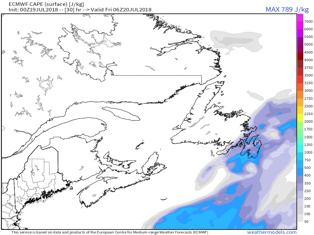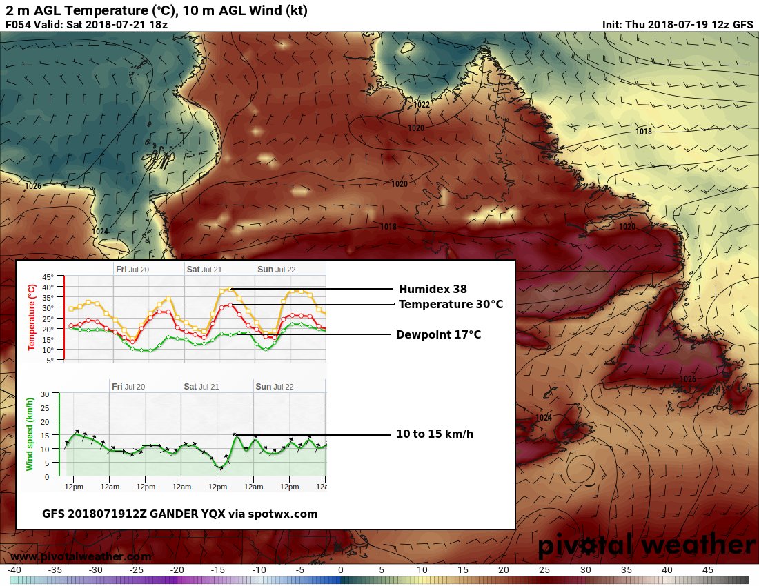 @Tely10NL changes quite a bit from yesterday. It's now looking like showers (and a good risk of thundershowers) is likely. But temperatures will still be very warm and muggy#nlwx pic.twitter.com/Txui4y3pOl