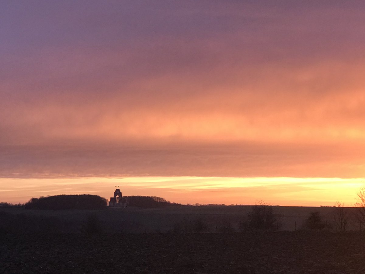 The Battlefields in Winter - sunset over the Thiepval Memorial on the Somme, January 2020.
