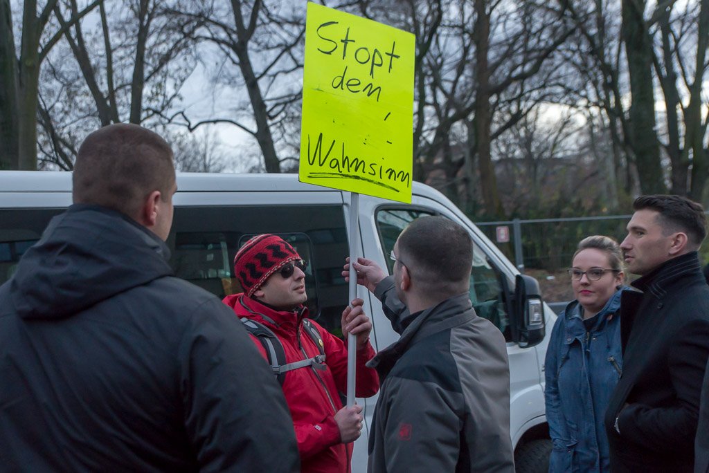 German police currently arrests those who demonstrate against right wing party. Water-canon stands ready.