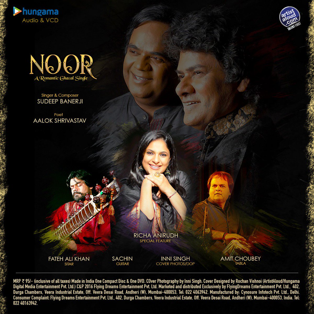 #NOOR A beautiful Ghazal has been written by@AalokTweet composed and sung by@sudeepbanerji in his inimitable magical voice. Ms@richaanirudh featuring for the first time in a Music Video, she is a very renowned Television presenter ,@fatehsitar the Sitar maestropic.twitter.com/1ztcYbz3ay