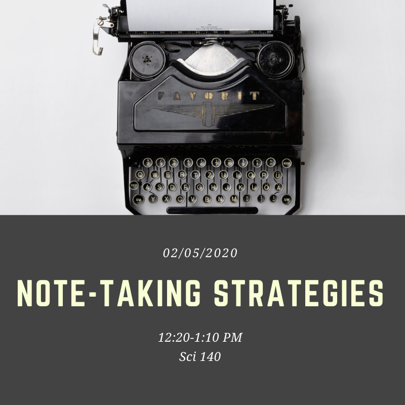 Workshop Wednesday this week we offer strategies on how to effectively take notes. The workshop will be held during Common Hour in Sci 140!