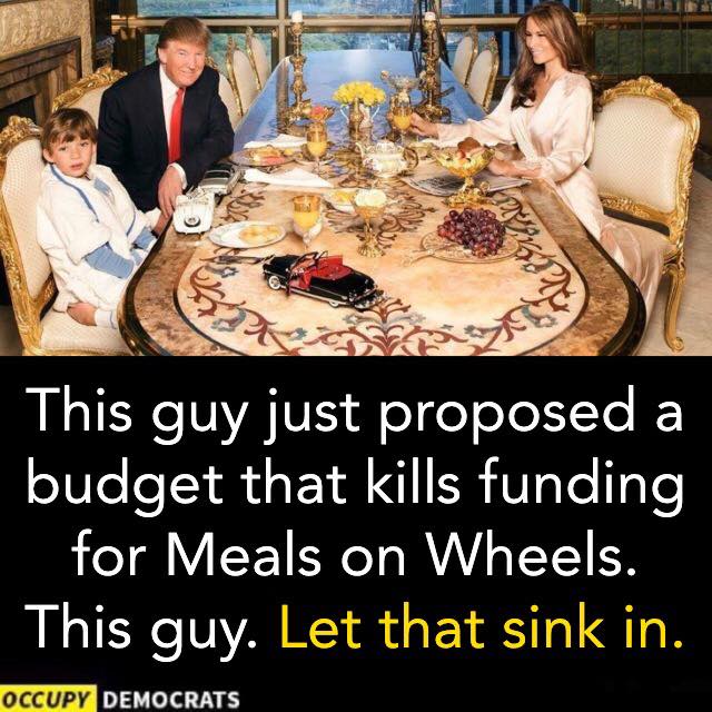 Cutting Meals on Wheels??? WTF is he thinking? Good luck WV, KY, TN, LA, AR...your grandparents are the targets....