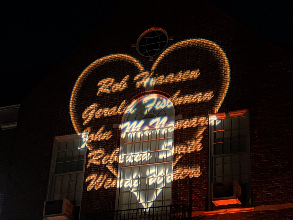 The outside of Maryland Hall in Annapolis is lit up tonight in honor of the 5 who lost their lives in the Capital Gazette shooting 1 year ago today.
