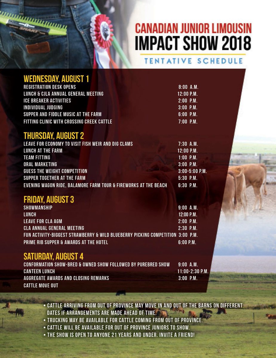 Updated schedule for the 2018 CJLA Impact Show. CLA Annual General Meeting will take place at 2:30 pm on Friday, August 3rd.
