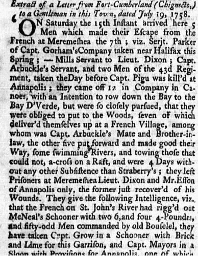 #OTD 1758: Letter from Ft. Cumberland (#NovaScotia) details the escape of several men from enemy Acadians on the St. John River, fleeing on rivers and through forests as they were chased pic.twitter.com/KkdnKfi2uh