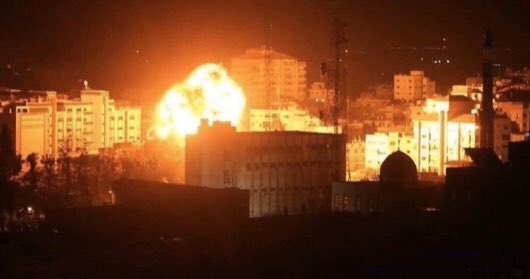 #Nuit à#Gaza où des avions de combat israéliens ont lancé une série de raids aériens en représailles au tir d'une roquette tombée dans une zone dégagée à Sderot.pic.twitter.com/dReB7hWaKj