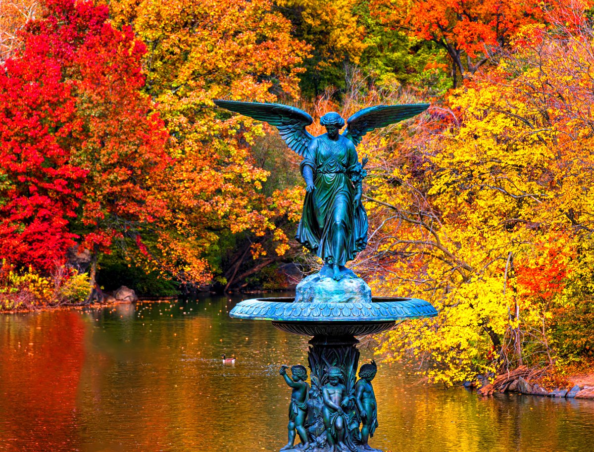 #foliage in#NYC now (photos: Central Park Bow Bridge, Central Park Angel of the Waters, 59th St. Bridge, Chrysler Bldg.)#NewYork#autumn pic.twitter.com/sjN0d5eSLb