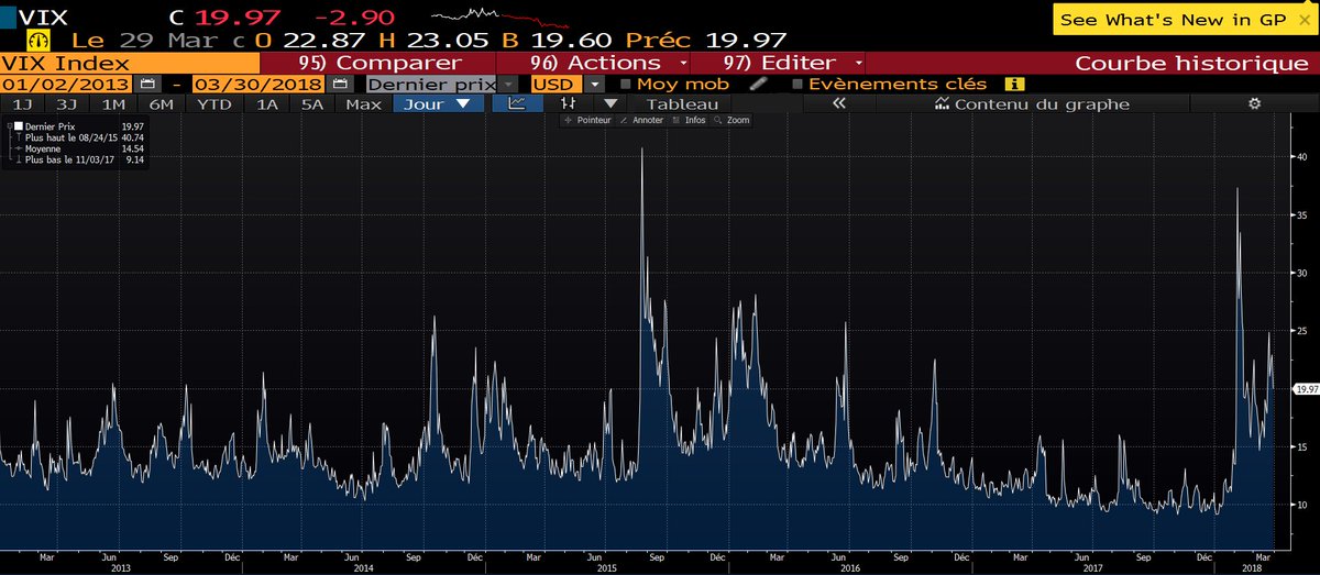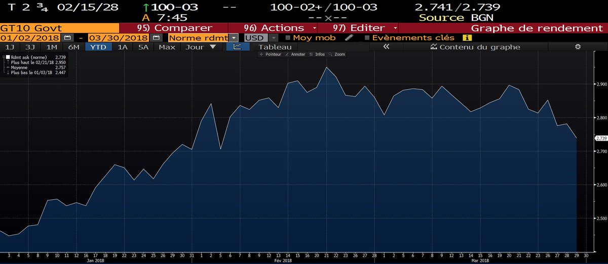 #actions américains hier, les#obligations souveraines US à 10 ans se sont encore détendues (2.74% désormais), signe que la confiance n'est pas encore complètement rétablie, comme le confirme le niveau du#VIX !pic.twitter.com/eM1K6qb1p8