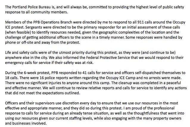 Portland Police Chief Danielle Outlaw issues statement saying the department responded to 41 calls for service at the